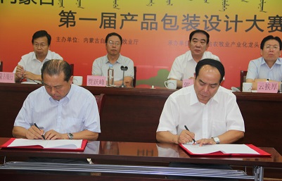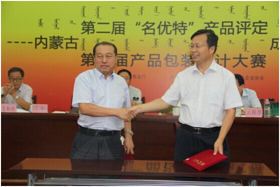 201487日,首屆內(nèi)蒙古自治區(qū)農(nóng)畜產(chǎn)品包裝設(shè)計(jì)競賽成果與2014(第二屆)內(nèi)蒙古“名優(yōu)特”農(nóng)畜產(chǎn)品認(rèn)定成果發(fā)布會(huì)在國際會(huì)展中心召開,自治區(qū)農(nóng)牧業(yè)廳廳長郭健、副廳長云挨厚、副廳長賈躍峰、辦公室主任侯雁冰及內(nèi)蒙古農(nóng)牧業(yè)產(chǎn)業(yè)化龍頭企業(yè)協(xié)會(huì)會(huì)長張世斌、執(zhí)行會(huì)長林永亮,招商銀行呼和浩特分行行長曲亮、內(nèi)蒙古銀行副行長靳生榮、中國郵儲(chǔ)銀行內(nèi)蒙古分行副行長鞏連華、中國銀行內(nèi)蒙古分行中小企業(yè)部總經(jīng)理劉揚(yáng)出席了此次會(huì)議,農(nóng)牧業(yè)廳產(chǎn)業(yè)化處處長王補(bǔ)在主持會(huì)議。