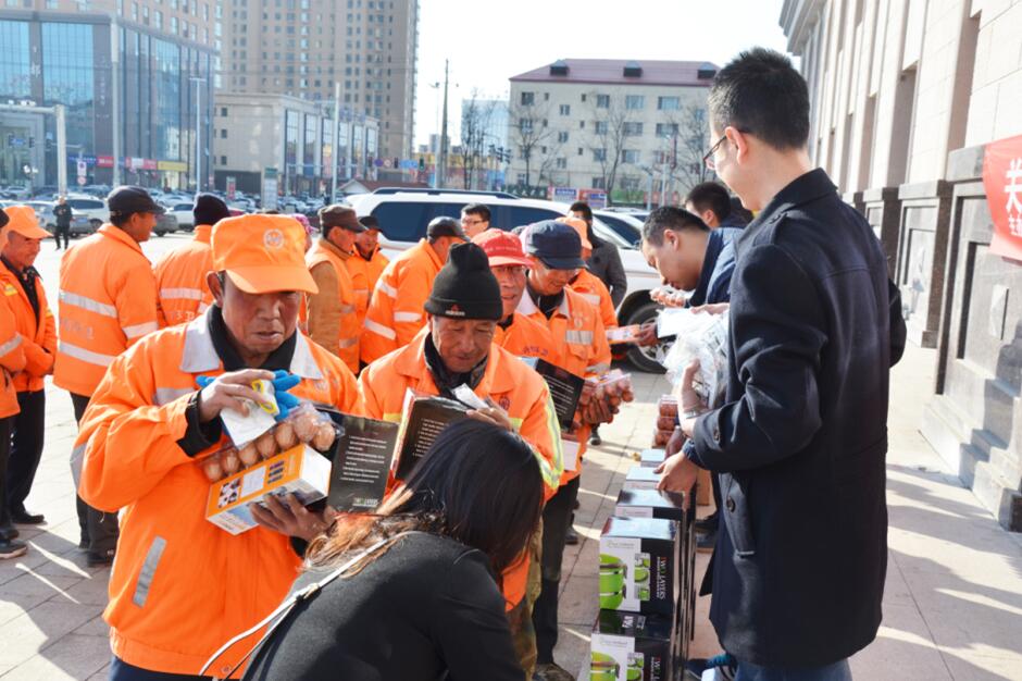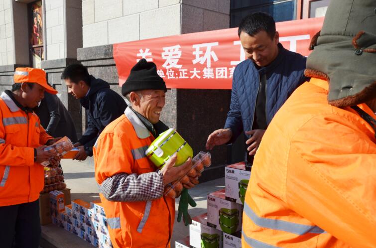 為了表達(dá)對他們的感謝,正大集團(tuán)內(nèi)蒙古區(qū)于328日舉辦了“關(guān)愛環(huán)衛(wèi)工 共建魅力城”活動(dòng),為呼和浩特市的100名城市環(huán)衛(wèi)工送上保溫飯盒、保溫杯、手套、防霧霾口罩以及正大雞蛋等慰問品?;顒?dòng)呼吁大家向環(huán)衛(wèi)工人學(xué)習(xí),學(xué)習(xí)他們默默奉獻(xiàn)的精神,多多體諒環(huán)衛(wèi)工人的辛苦,自覺收集生活垃圾,投放到指定地點(diǎn),努力創(chuàng)造清潔美麗的生活環(huán)境,共同為提升城市對外形象和品位做出自己的貢獻(xiàn)。