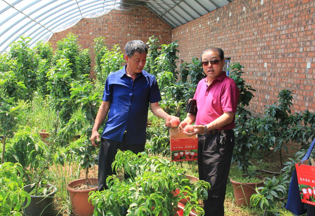 呼和浩特市新城區(qū)野馬圖裕豐種植農民專業(yè)合作社周俊表與協(xié)會執(zhí)行會長兼秘書長林永亮體驗采摘