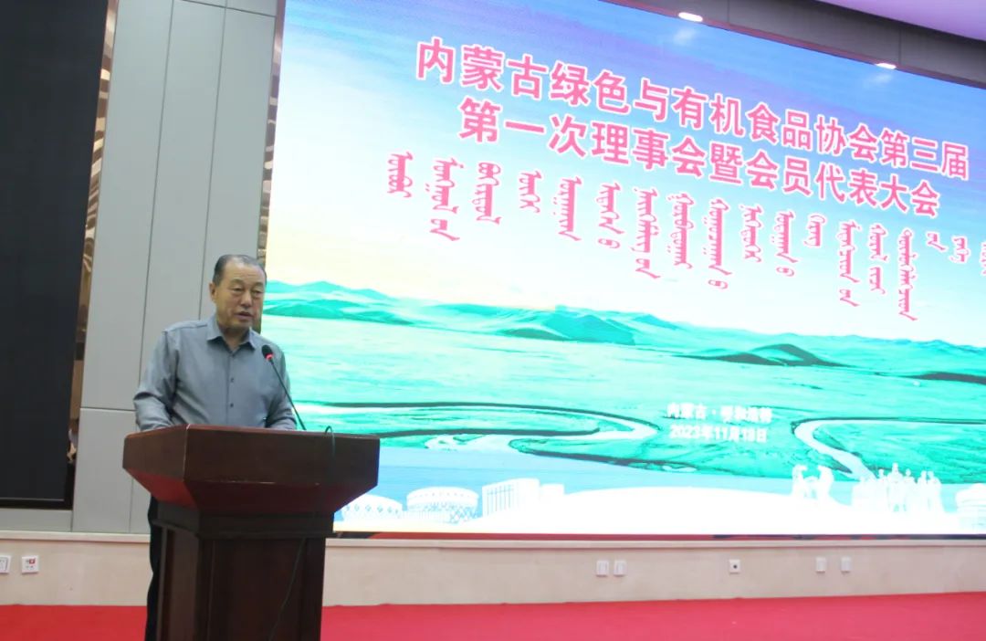 2023年11月18日上午,內(nèi)蒙古綠色與有機食品協(xié)會第三屆第一次理事會暨會員代表大會及2023第十一屆“名優(yōu)特”發(fā)布會在呼和浩特市召開,內(nèi)蒙古自治區(qū)農(nóng)牧廳市場與對外合作處副處長鄔冰泉、自治區(qū)農(nóng)畜產(chǎn)品質(zhì)量安全監(jiān)督管理中心副主任云巖春,自治區(qū)民政廳社管局黨建指導員張潤山、自治區(qū)農(nóng)牧業(yè)技術(shù)推廣中心鄉(xiāng)村產(chǎn)業(yè)推進處處長趙于東、內(nèi)蒙古農(nóng)牧業(yè)產(chǎn)業(yè)化龍頭企業(yè)協(xié)會執(zhí)行秘書長呼群、內(nèi)蒙古綠色與有機食品協(xié)會會長王尚義,全體會員單位及新聞媒體出席會議,會議由協(xié)會執(zhí)行會長林永亮主持。