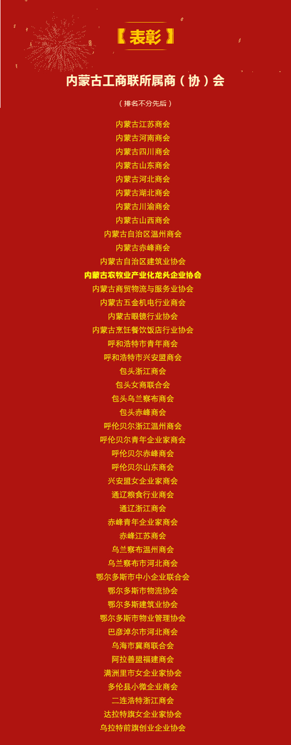 標題:喜報!內(nèi)蒙古農(nóng)牧業(yè)產(chǎn)業(yè)化龍頭企業(yè)協(xié)會再次榮獲全國“四好”商會榮譽稱號