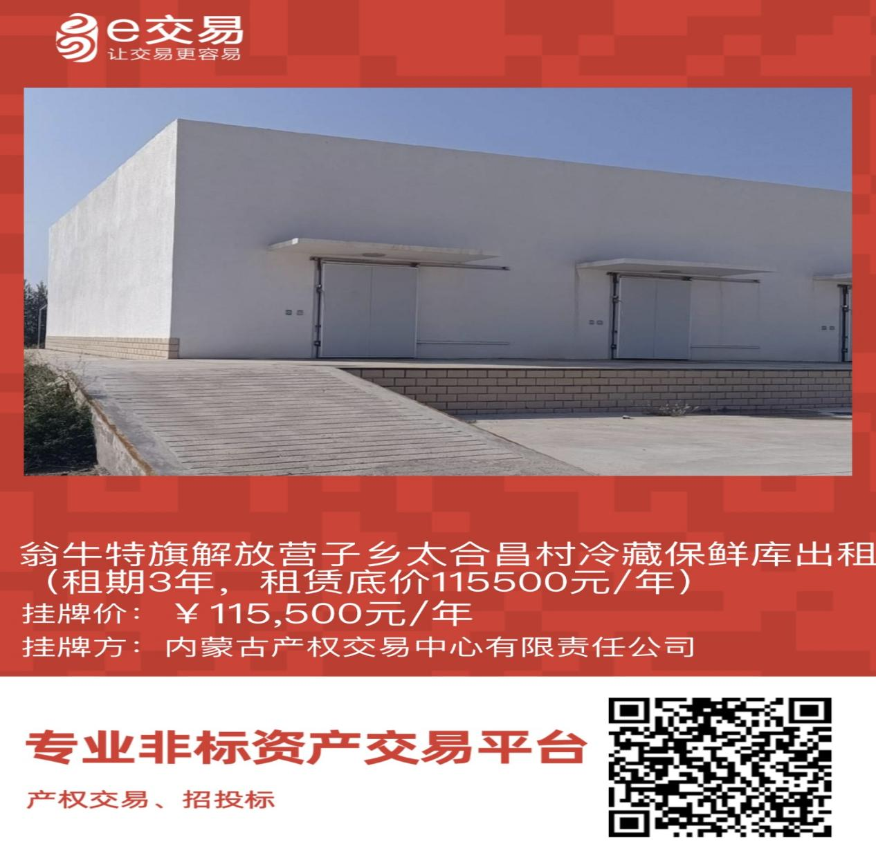 翁牛特旗解放營子鄉(xiāng)太合昌村冷藏保鮮庫出租(租期3年,租賃底價(jià)115500元/年)