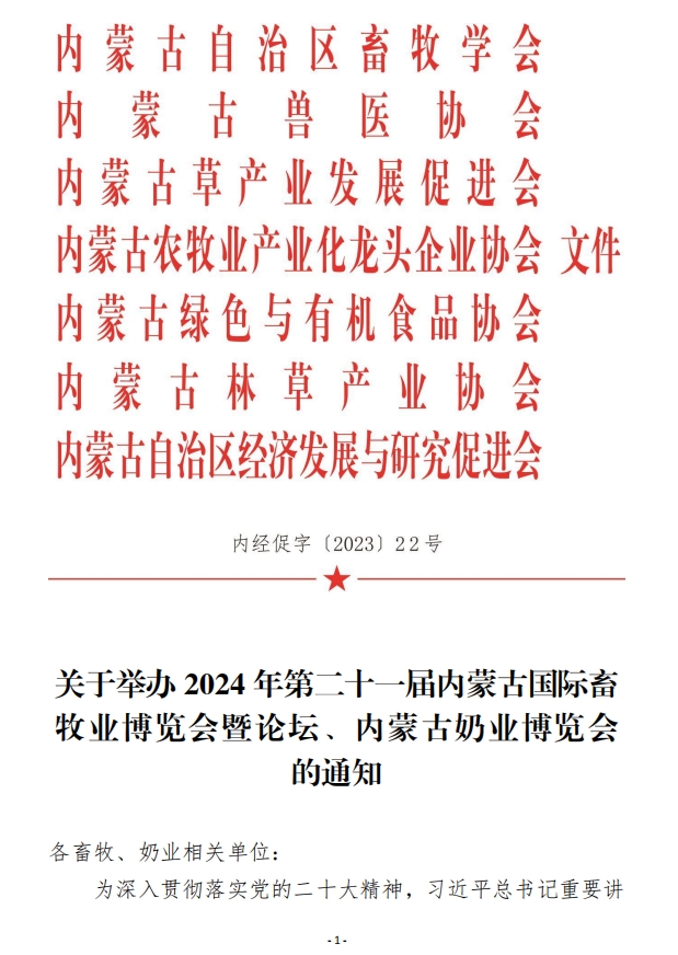 關(guān)于舉辦2024年第二十一屆內(nèi)蒙古國際畜牧業(yè)博覽會暨論壇、內(nèi)蒙古奶業(yè)博覽會的通知