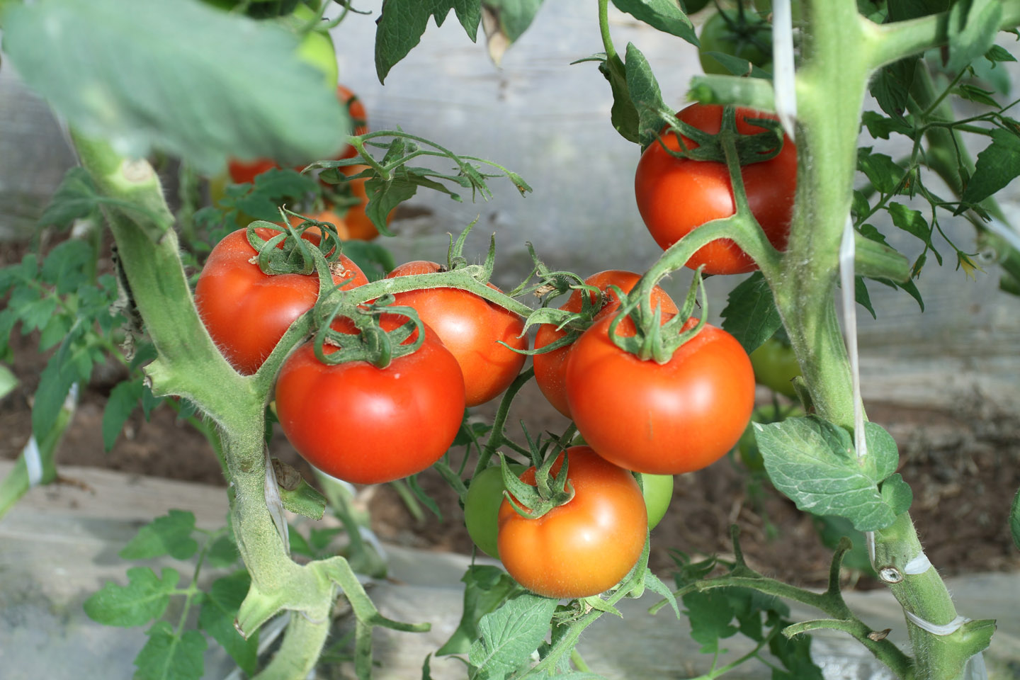磴口茂欣公司的番茄、西紅柿以無污染、果肉厚、著色好、紅色素、 a酸、可溶性固形物含量高而著稱。內(nèi)蒙古茂欣農(nóng)牧業(yè)開發(fā)有限公司種植的西紅柿品種有大黃柿子、大紅柿子、小黃柿子、小紅柿子、小綠柿子,品種齊全。
