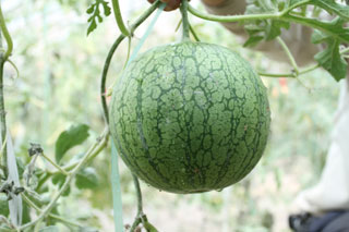 華萊士瓜盛產(chǎn)于內(nèi)蒙古磴口縣,產(chǎn)區(qū)地處烏蘭布和,為黃河沖積平原,土層深厚,土壤肥沃,含大量有機(jī)礦物質(zhì);年日照3000小時以上,氣候干燥,晝夜溫差大;水源泉豐富,年降水量160毫米左右,雖干旱少雨,但黃河穿區(qū)而過,灌溉方便。由于這種特質(zhì)的生長環(huán)境,使得華萊士瓜具有獨特的品質(zhì)特性:皮色鮮艷、皮薄肉細(xì)、光滑潔潤、甜之如蜜、汗液適可、軟脆適度,具有蜜桃、蘋果、荔枝、香蕉、芒果等多種味道,香氣濃郁、營養(yǎng)豐富、香甜爽口,被譽為“瓜中仙品”。