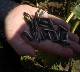 屬中晚熟種,生育期105天,株高180200cm,適應(yīng)性廣,種皮薄,易抓苗;抗病性強(qiáng)。花盤(pán)直徑 18.521cm,單盤(pán)粒重151克左右,盤(pán)口緊密結(jié)實(shí);平均百粒重18.31克,籽粒飽滿,結(jié)實(shí)率高;籽粒長(zhǎng)2.0cm以上,寬0.9cm,種皮黑色帶白邊間有白條紋,顏色較為黑亮。